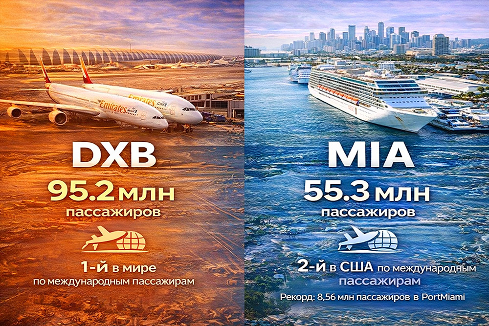 Доступность транспорта и путешествий. Дубай — мировой авиационный гигант, Майами — не менее сильный транспортный хаб